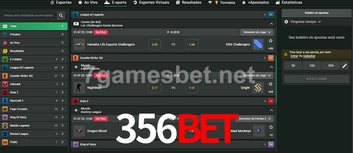 O 356bet oferece uma grande seleção de opções de apostas em e-sports com probabilidades competitivas